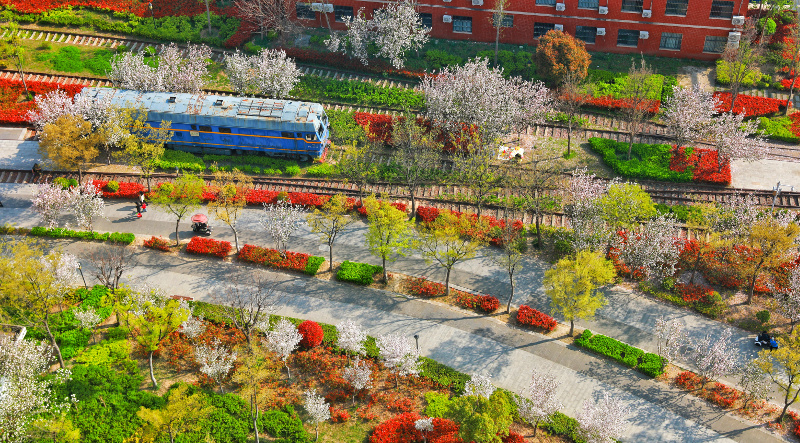 3月28日,周口市铁路公园内,春日盛景如约而至。老铁轨蜿蜒向前,蓝皮火车承载着岁月印记,与盛放的白花、明艳的灌木相映成趣。错落的绿植与步道串联起四季景致,市民徜徉其间,在工业风情与春日繁花的碰撞中,领略周口生态蝶变与文旅融合的独特魅力。许明 摄