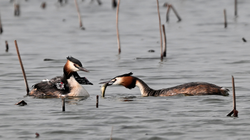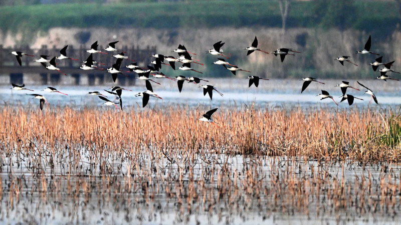 春日的淮阳龙湖,芦苇摇曳,碧波粼粼。黑翅长脚鹬振翅掠水、凤头鸊鷉温情育雏、苍鹭群栖振翅,万千水鸟在此安家。水清岸绿的家园里,人鸟相望、互不惊扰,绘就出一幅人与自然和谐共生的动人画卷。李然 摄
